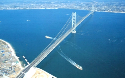 The Akashi Kaikyo is the longest, tallest, AND most expensive suspension bridge in the world! The Akashi Kaikyo spans the Akashi Strait between Maiko, Tarumi-ward in Kobe, and Matsuho, on Awaji Island. The bridge is 1,991 meters long (almost 4 km) and took ten years (from 1988 to 1998) to build, withstanding one earthquake in 1995 that didn't damage the bridge at all. The bridge is so long, it would take eight Sears Towers laid end to end to span the same distance.