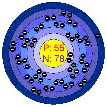 Common Compounds: - Cesium reacts readily with oxygen. - it reacts explosively with water to form cesium hydroxide, the strongest base known. - reacts with ice at temperatures above -116°C. - Cesium reacts with the halogens to form a fluoride, chloride, bromide, and iodide. It also forms a sulfate, carbonate, nitrate, and cyanide. Uses: - While in compounds with other elements Cesium is used in the production of glass and ceramics. It is also used in antishock agents in conjunction with drugs containing arsenic. - Cesium-137 (an isotope of Cesium), is created in the fallout of nuclear explosions. This same isotope is used in the treatment of Cancer. - Cesium is found in the mineral pollux (or pollucite) that is found in Maine and South Dakota - Cesium is used as an ion propellant for rockets because its looses electrons readily and because its ions are heavy - it removes traces of air in vaccum tubes Characteristics: soft, light, silvery white metal