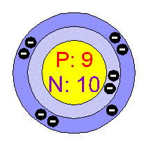 Protons: 9 Electrons: 9 Neutrons: 10 |