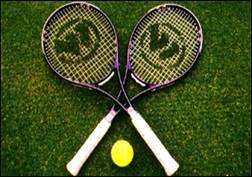 General Information about the courts Courts are 27 feet for singles players and 36 feet for doubles. The net is 3.5 feet high on the sides or at the post and 3 feet high in the center of the court. The back line is called the base line and is 18 feet from the service box. The middle line is 21 feet from the net and is called the service line or the box which could be called the service box.