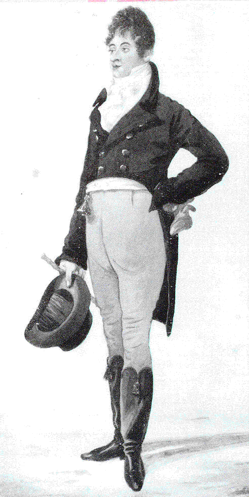 What A Beau Brummell! Beau started Dandy movement. He believed in refined gentlemen's dress and thought a man's wardrobe should not be excessive. He felt clothes should be plan in color with very few ornaments. Brummel created the first suit and said it should be the staple to every gentlemen's attire. Men today only wear black and white when going to a formal evening party. Brummel set these precedents in the nineteenth century which are still seen everyday. |